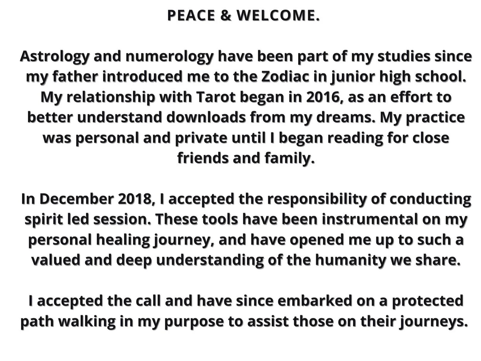 I channel messages with the help of spirit guides, benevolent ancestors & Angels when pulling tarot & oracle cards. Choose Tarot when booking your reading.